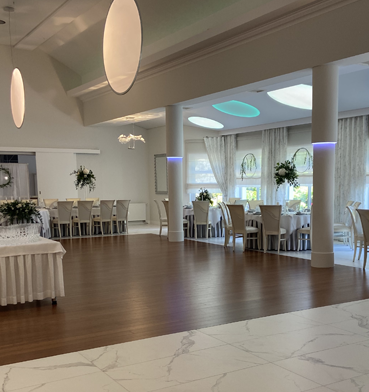 Do Państwa dyspozycji jest przestronna, nowoczesna sala bankietowa oddana do użytku po generalnym remoncie w lipcu 2020r. oraz zupełnie odświeżona część restauracyjna, zachwycająca swoim nowoczesnym i nietuzinkowym wnętrzem.